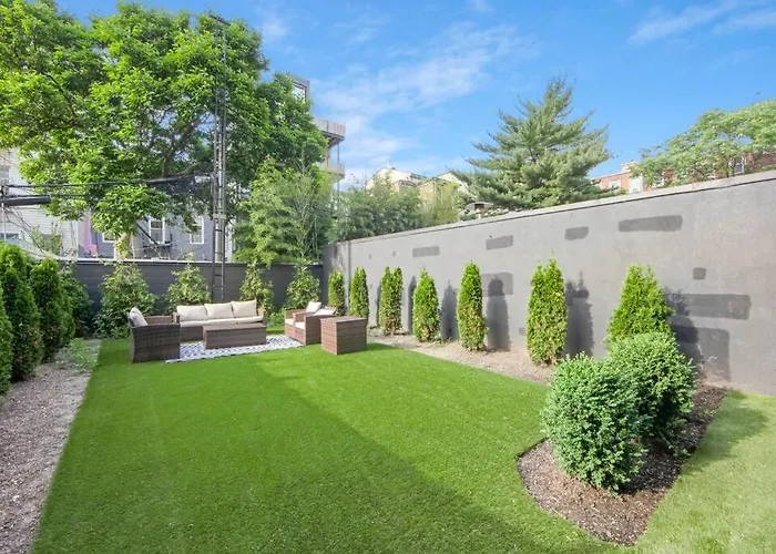 Eine Kaffee-/Teemaschine, ein Kühlschrank und Küchenutensilien sind auch in einer kompletten Küche zu finden. Das Restaurant The Brooklyn Barge mit Gerichten aus der amerikanischen Küche liegt nur 300 Meter zu Fuß von hier entfernt. Die 149Bk-101 New Construction 2Br Private Garden W-D liegt in unmittelbarer Nähe vom Busbahnhof Freeman Street & Manhattan Avenue und bietet eine gute Anbindung an viele Sehenswürdigkeiten.